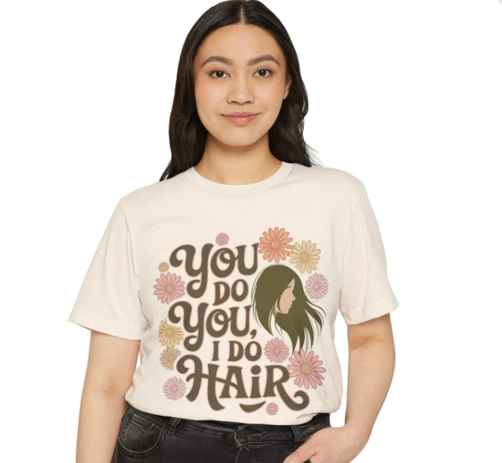 Celebrate your passion for the craft with this boho-inspired tee. Soft, comfortable, 100% recycled cotton and effortlessly stylish—perfect for wearing behind the chair or showing off your hairstylist pride anywhere you go.